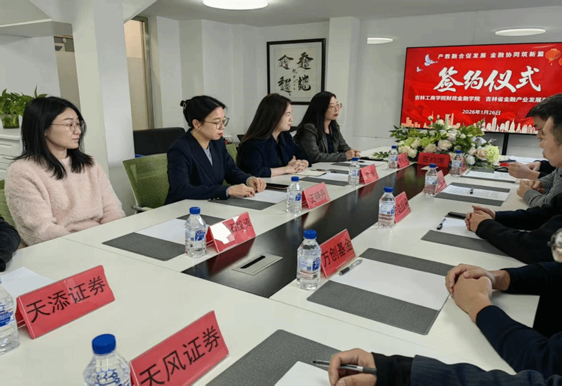 为深入贯彻落实学校“五个一行动方案”部署要求,精准对接行业发展需求,深化产学研协同创新,1月26日,吉林工商学院财政金融学院与吉林省金融产业发展有限公司、吉林省天风证券投资咨询有限公司等七家科研成果采纳企业合作签约仪式顺利举行。此次签约是学院扎实推进“五个一行动”的关键举措,标志着学院在科研成果转化、校企合作育人等方面迈出实质性步伐。七家企业均为前期已采纳学院科研成果的合作单位,双方在前期良好合作基础上,进一步拓展合作领域、细化合作内容,共同谱写校地校企协同发展新篇章。