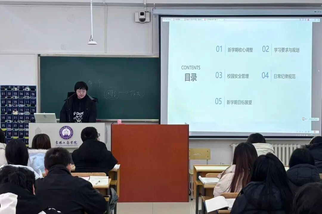 本次班会紧扣返校适应、思想动态、安全教育、学风建设四大核心内容,靶向发力、精准施策。班会上,各位辅导员认真负责、细致讲解,重点围绕寝室安全、用电规范、节假日出行安全、网络安全及防范电信诈骗等内容开展警示教育,用真实案例敲响安全警钟,引导同学们树牢“安全第一、生命至上”的理念,切实提升自我防护能力。同时,聚焦学风建设关键环节,辅导员对课堂出勤、课堂纪律、手机管理、学习规划等提出明确要求,鼓励同学们端正学习态度、明确奋斗目标,以严谨务实的作风投入专业学习。