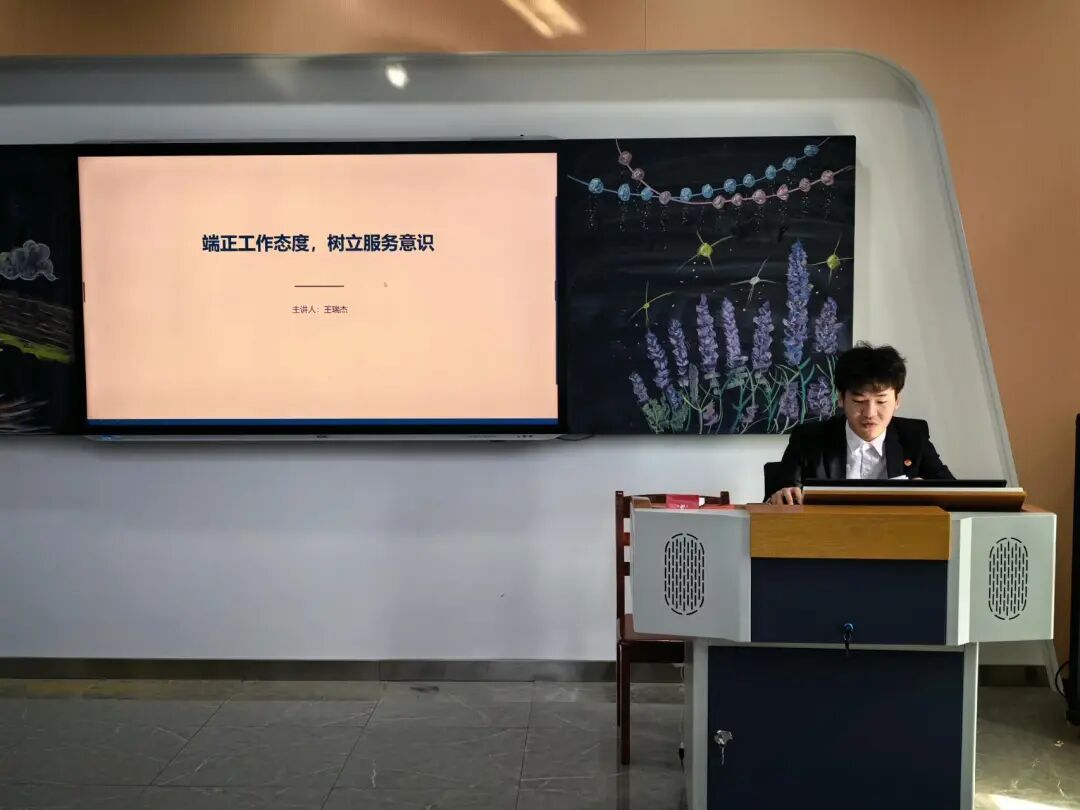 王瑞杰开篇点明学生组织的核心意义,强调学生组织是连接学院与同学的重要纽带,其琐碎工作直接影响同学体验与对学院的认同感,而态度与服务意识,是组织稳定运转、服务同学的关键。讲解中,他围绕“端正工作态度、树立服务意识、做到知行合一”三大核心展开,提出“一弃一立、一克一增、一戒一持”的改进方向,引导学生干部摒弃功利心、克服畏难心、戒除浮躁心,树立责任心、增强进取心、保持平常心。同时强调服务是学生组织的立身之本,要求大家放下“学生干部身份”,提升服务本领,主动向前一步,做同学的“勤务员”“贴心人”,并将态度与意识落实到小事、协作、反思与坚持中,以持久付出赢得信任。
