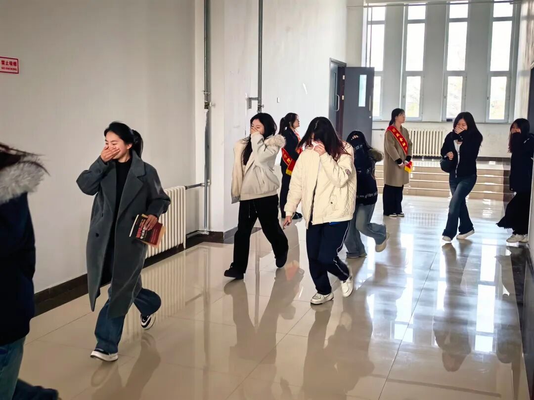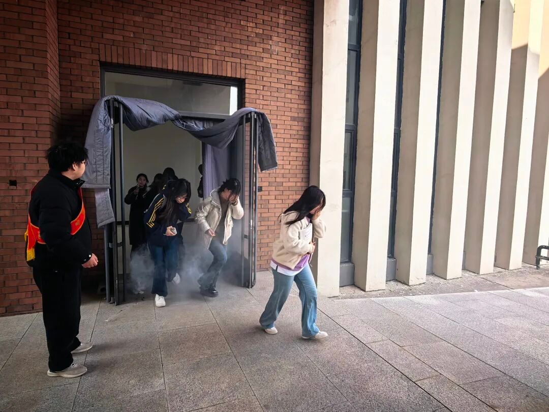 讲座结束后,学院随即组织开展了消防实操演练,模拟教学楼火情突发场景,参与学生闻令而动、反应迅速,严格按照讲座中讲解的逃生路线和技巧弯腰捂鼻、有序疏散,整个撤离过程快速高效、井然有序。演练全程衔接顺畅、处置有效,切实将理论知识转化为实操能力,让大家在实战化的场景中深化了消防应急处置认知。