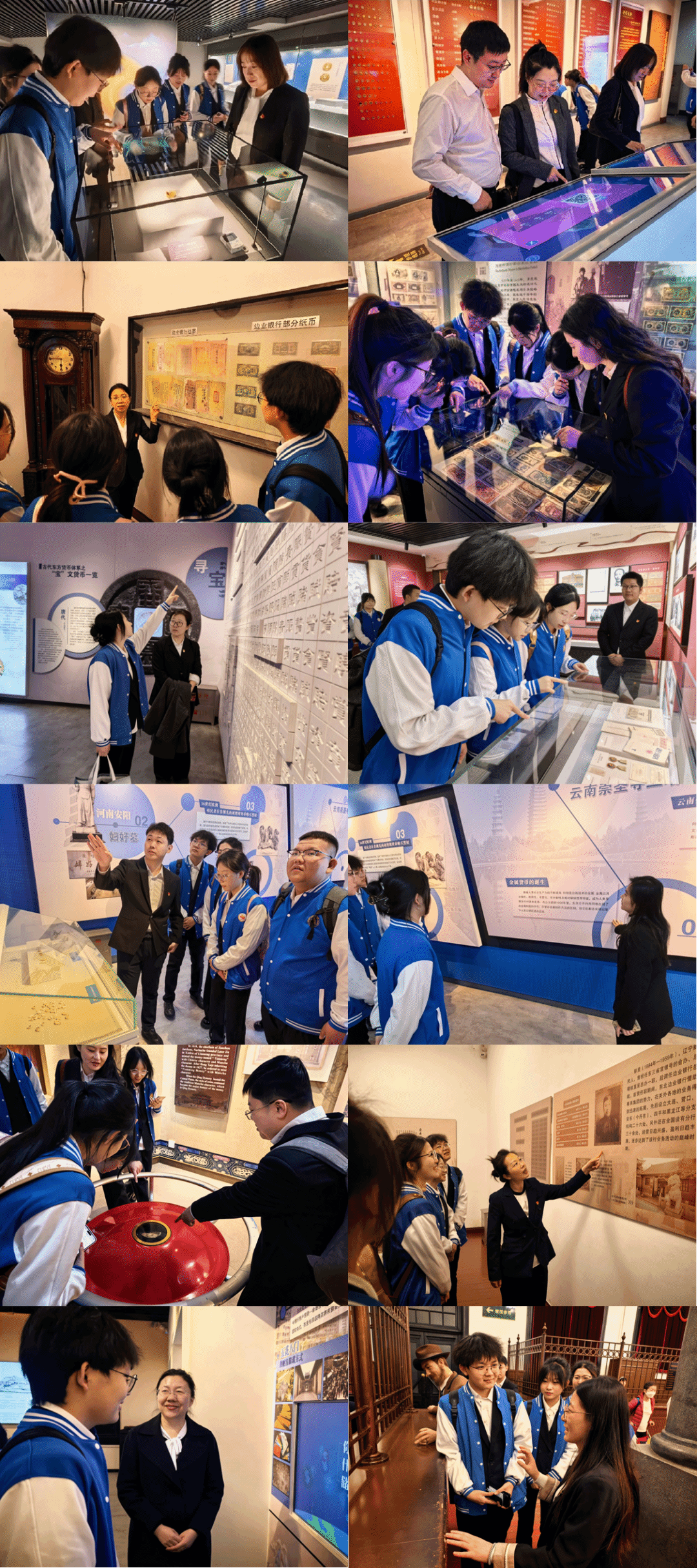 在教师的带领下,研学队伍开启了探寻红色金融记忆的旅程。博物馆内,一张张泛黄的红色金融文件、一枚枚承载历史的抗币与苏维埃国币、一件件见证岁月的金融器具,串联起革命年代的红色金融奋斗史。“强国行”团队教师党员结合专业知识,为学子们解读边业银行发展史、革命先辈整顿金融秩序、发行货币支援革命的故事,学子们驻足聆听、交流感悟,深刻感悟红色金融“以民为本、诚信为基”的初心,明晰财政金融人的责任与使命。
