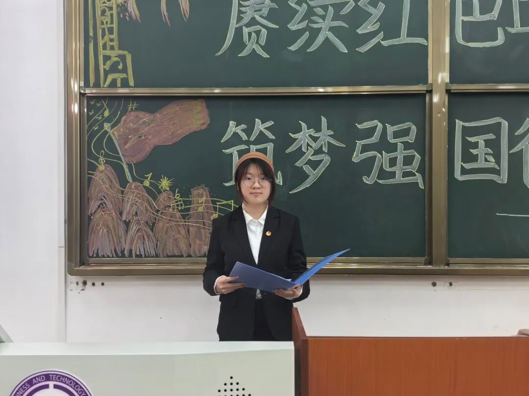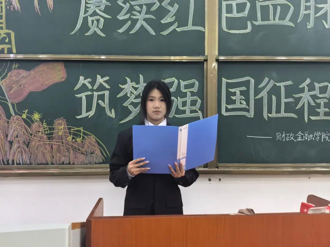 然后由宣讲团成员邓璐馨围绕“赓续红色血脉,筑梦强国征程”主题深情宣讲。她回望百年峥嵘岁月,阐释红色血脉是中华民族的精神脊梁,讲述革命先辈与建设者的奋斗历程,解读家国情怀、坚定信仰、艰苦奋斗的红色精神内涵;结合财政金融学院学子身份,号召同学们深耕专业、锤炼本领,将个人理想融入强国伟业,以青春奋斗扛起时代使命,用实际行动为民族复兴贡献力量。
