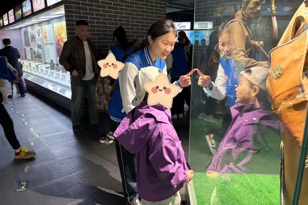 参观过程中,志愿者与孩子们的互动温暖治愈。面对孩子们的好奇提问,哥哥姐姐们耐心倾听、细致解答;对性格腼腆的孩子,用笑容与鼓励拉近距离;对活泼好动的孩子,耐心引导有序参观,展厅里满是温馨氛围。互动体验环节,志愿者化身贴心玩伴,陪着孩子们辨认老物件、模拟传统生活场景,在欢声笑语中拉近彼此距离。孩子们在陪伴中收获快乐与安全感,志愿者也在服务中践行志愿精神,读懂陪伴的意义。