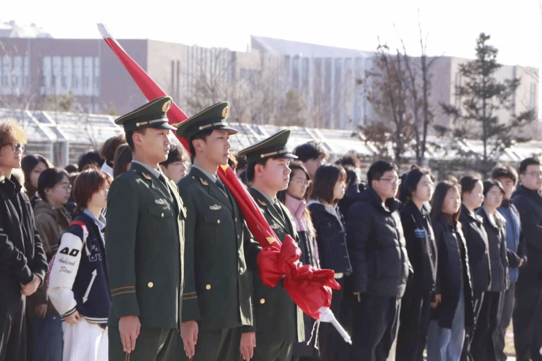 仪式伊始,伴随着庄重的氛围,学院仪仗队队员步伐铿锵、队列严整,以挺拔身姿、坚定目光昂首行进,稳步迈向升旗台,一举一动尽显青年学子的蓬勃朝气与优良风貌。