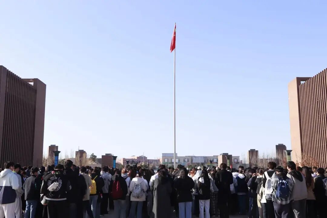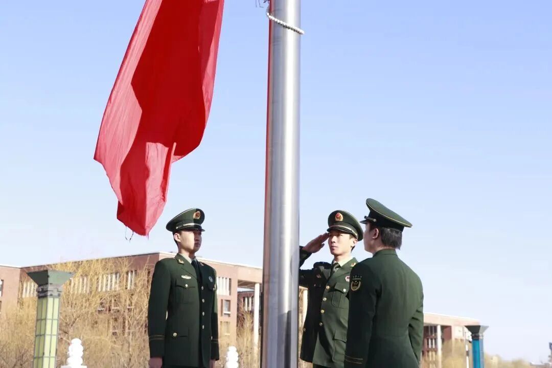 晨光熹微,鲜艳的五星红旗伴随着雄壮的旋律冉冉升起,迎风招展,彰显庄严与荣光。全体师生肃立行注目礼,目光紧随国旗攀升,嘹亮的国歌声里满含对祖国的赤诚热爱与崇高敬意,深切传递为国家安全、民族复兴拼搏的坚定信念。