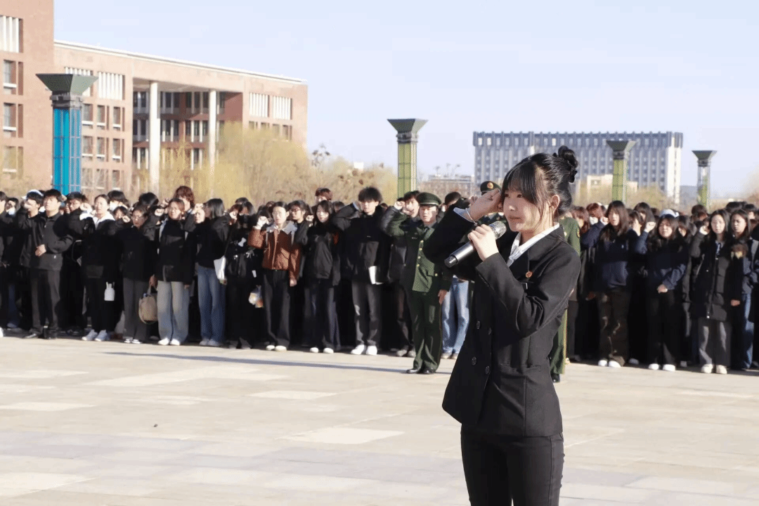 学生代表金融学24403班孙鸣汗在国旗下发表讲话。他以新时代青年的视角锚定时代使命,围绕国家安全教育主题传递青春信仰,发言真挚恳切、富有感召力。他号召同学们以理想铸魂、以实干立身,将个人成长融入国家安全事业,用青春担当守护家国安宁,充分展现了当代青年的赤诚初心与昂扬锐气。