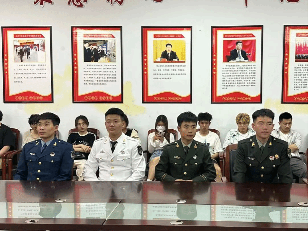 金融学院优秀退役大学生宋昊昆、赫澜力、刘岩、彭宇润泽向2023级有参军意愿的同学们介绍了在部队的生活、不同部队之间的区别等情况,他们鼓励青年大学生们,要胸怀从军报国之志,不忘初心、践行使命,积极为国防和军队现代化建设奉献自己的力量。