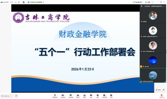 为深入贯彻学校应用型大学办学定位,切实将学科专业建设锚定产业发展需求,全面落实学校“五个一行动”专项工作要求,1月23日,吉林工商学院财政金融学院召开“五个一行动”专项工作部署会,明确任务分工、细化推进举措,全力推动产教融合、校企合作走深走实。党委书记孙海英,学院院长党杨,党委副书记李美婧,副院长霍云雷、王晓丹、蔺大勇参会。