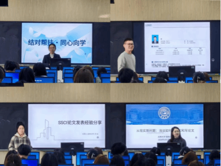聘任仪式结束后,几位博士开启分享环节。他们结合自身研究领域、科研实践经历与学术研究成果,带来干货满满的专题报告,从科研选题技巧、研究方法运用、论文撰写要点等多个核心维度倾囊相授,用自己发表文章的真实科研经历和专业的讲解,为在场学子解锁科研新思路、新方法。